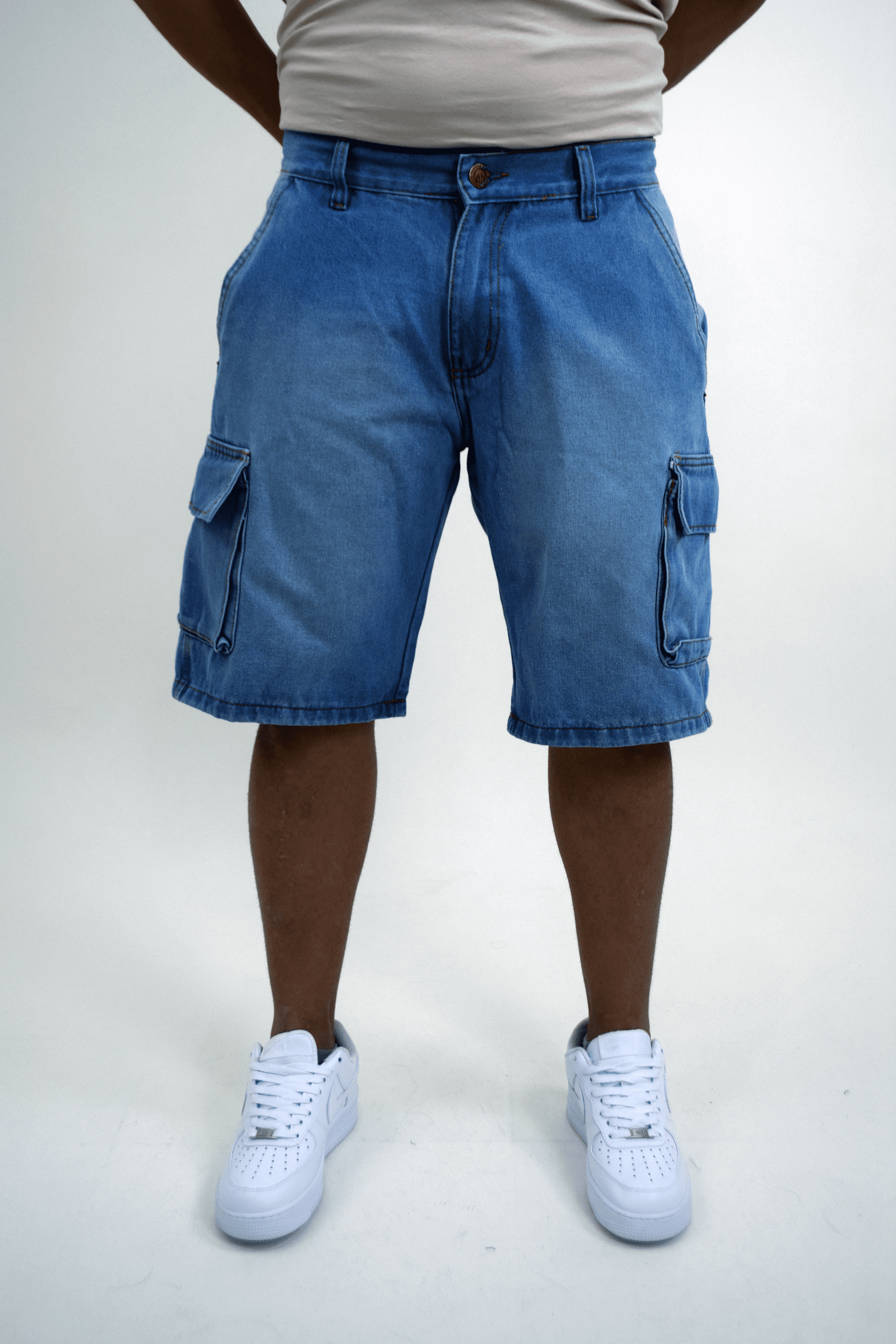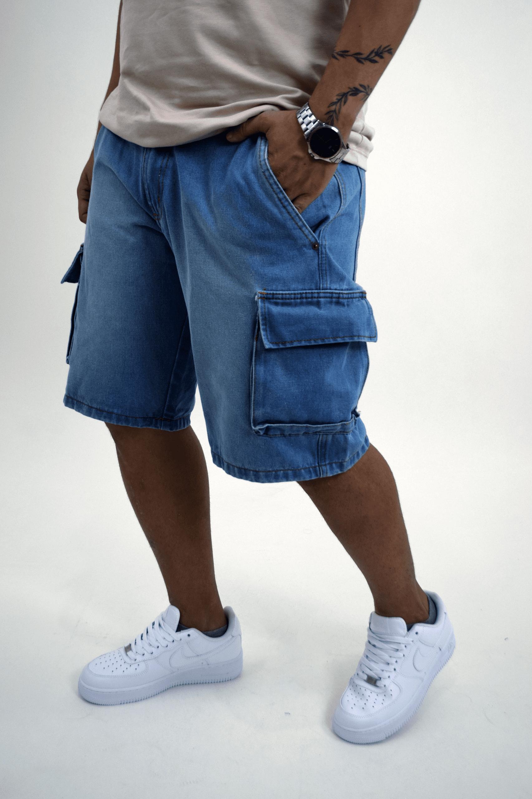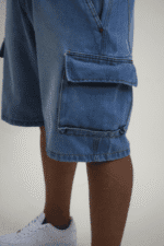 BERMUDA JEANS CARGO AZUL PRELAVADA