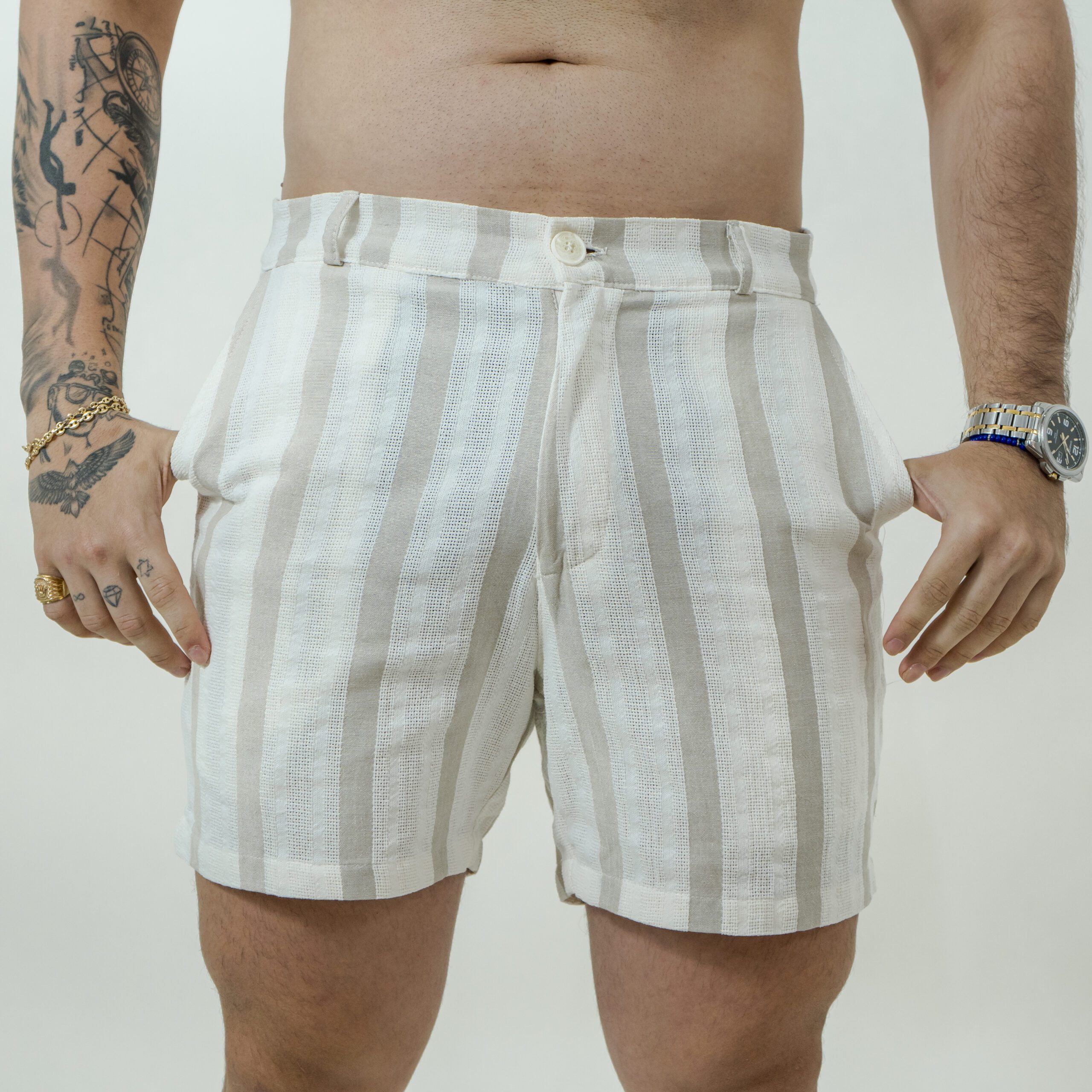 Inicio SHORTS & BERMUDAS Bermuda Marfil Lineas Beige Lino