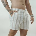 Bermuda Weads tipo lino, fresca y ligera, con diseño a rayas que combina estilo y comodidad. Perfecta para climas cálidos y looks casuales con un toque elegante.