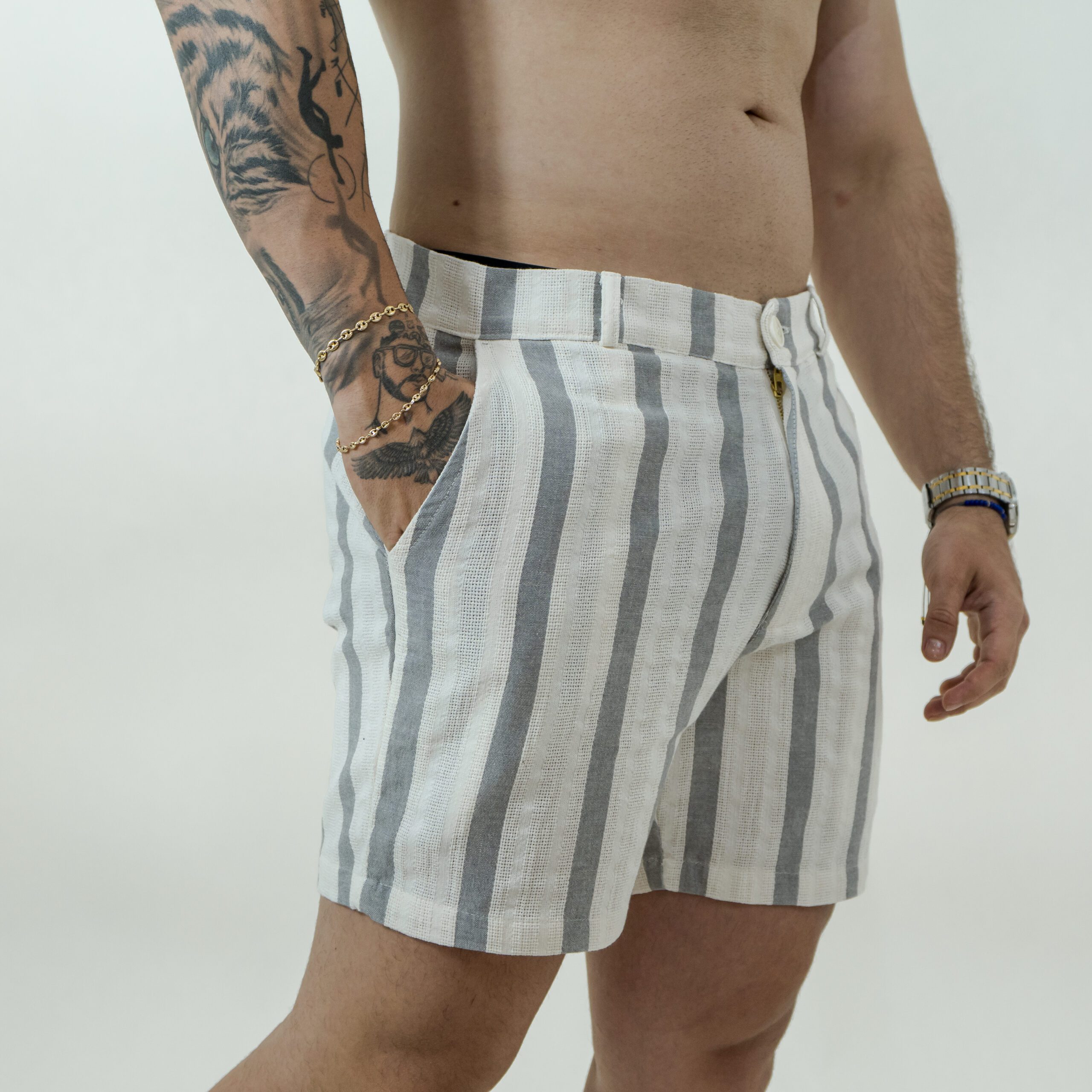 Bermuda Weads tipo lino, fresca y ligera, con diseño a rayas que combina estilo y comodidad. Perfecta para climas cálidos y looks casuales con un toque elegante.