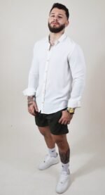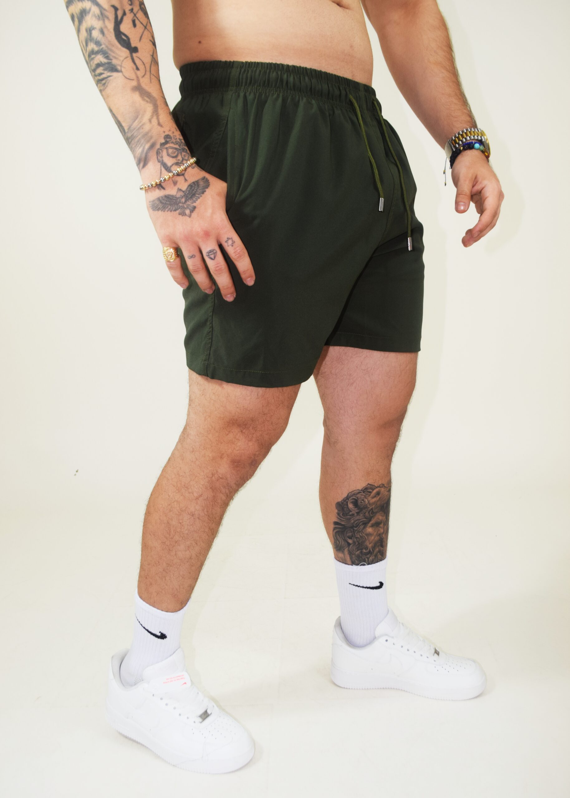 Bermuda semipermeable verde militar, ligera y de secado rápido, ideal para tus días activos y tus outfits más frescos. Si buscas comodidad y estilo en un solo lugar, esta bermuda es para ti