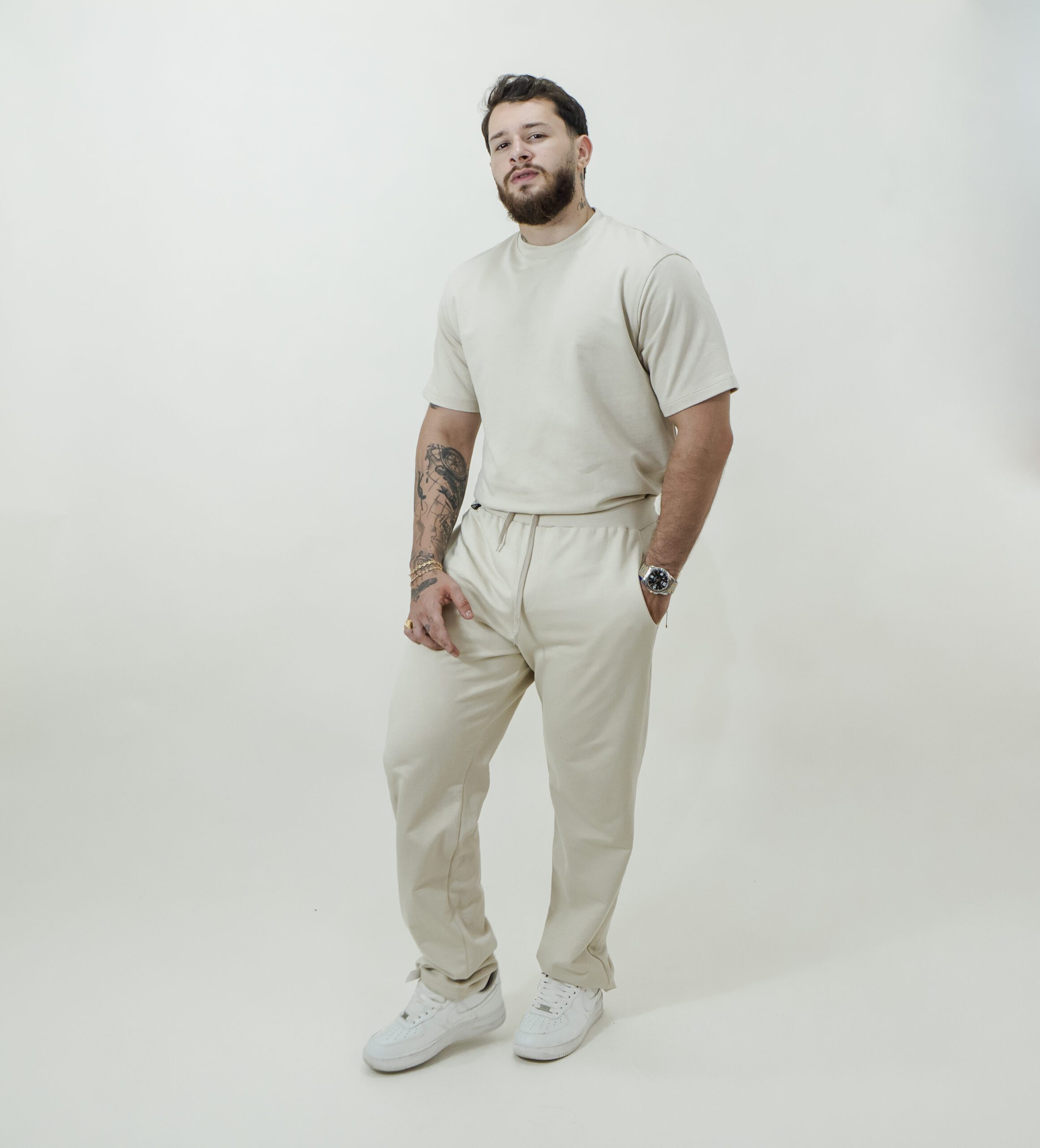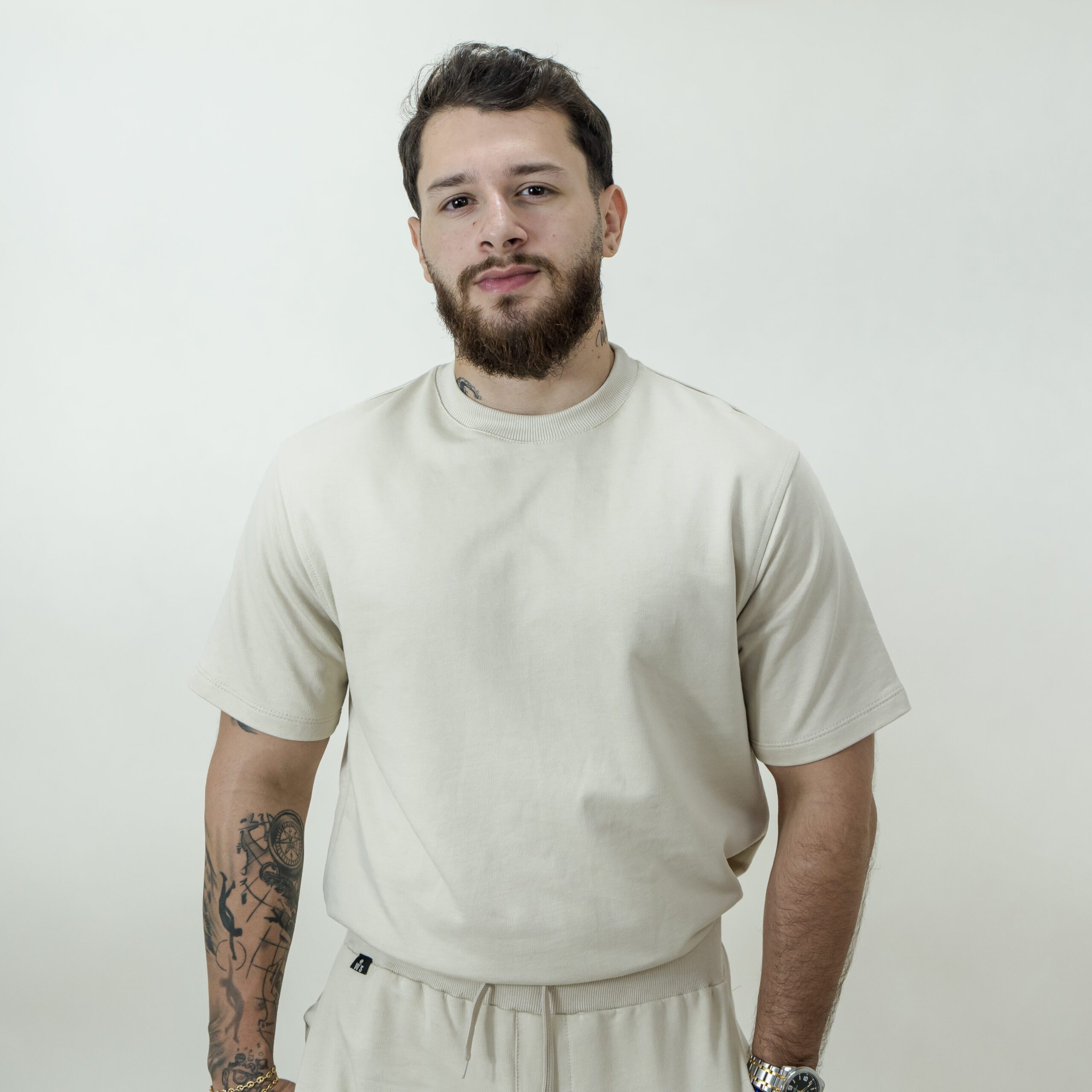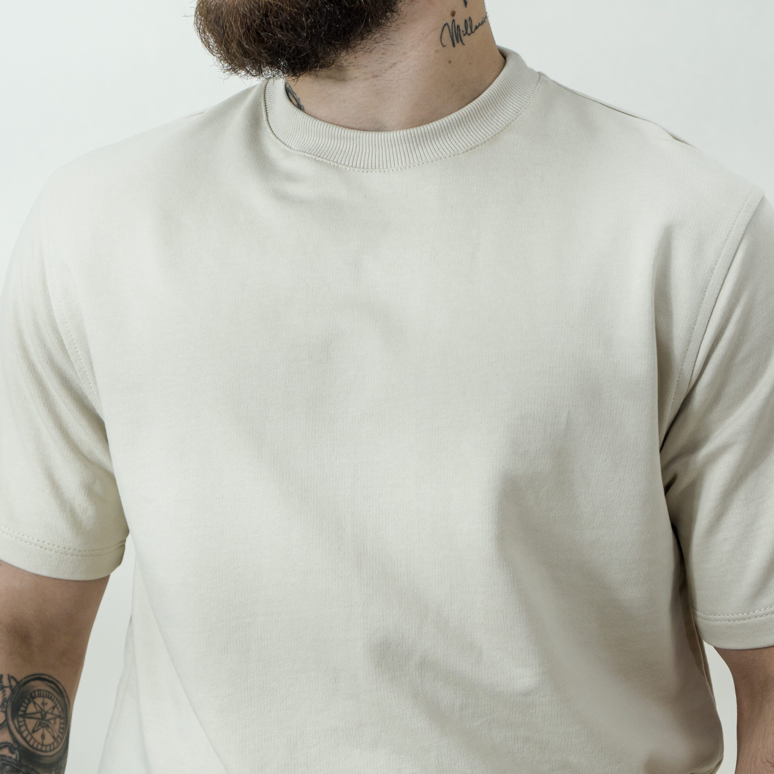 Camiseta beige de algodón 300 gr, gruesa, resistente y de alta calidad. Diseño minimalista con ajuste cómodo, ideal para un look urbano y moderno.