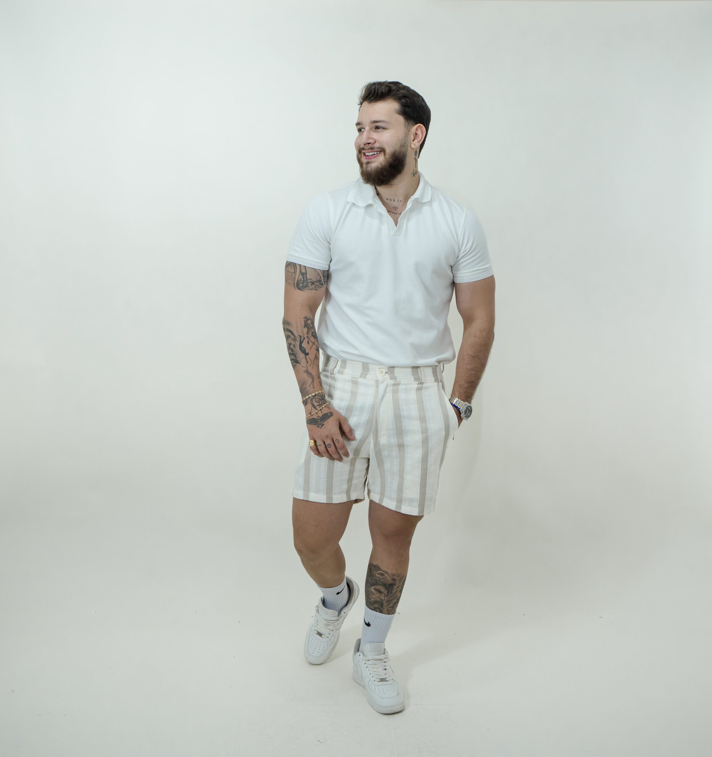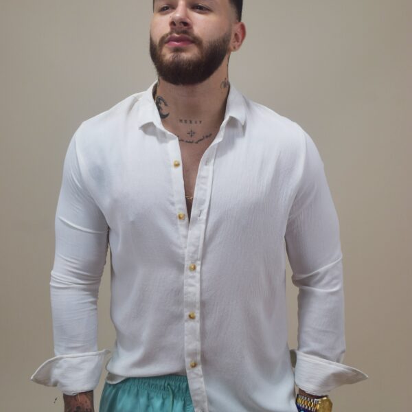 Esta polo blanca es la combinación perfecta entre elegancia casual y comodidad diaria. Su diseño de líneas limpias y cuello clásico con abertura frontal aporta un estilo moderno y sofisticado, ideal para cualquier ocasión.