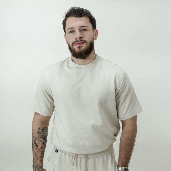 Confeccionada en un tejido texturizado de alta calidad, ofrece una sensación suave al tacto, excelente transpirabilidad y un ajuste cómodo que se adapta al cuerpo sin perder estructura. Sus mangas con terminación acanalada y su acabado premium elevan el look, manteniéndolo pulido y actual.