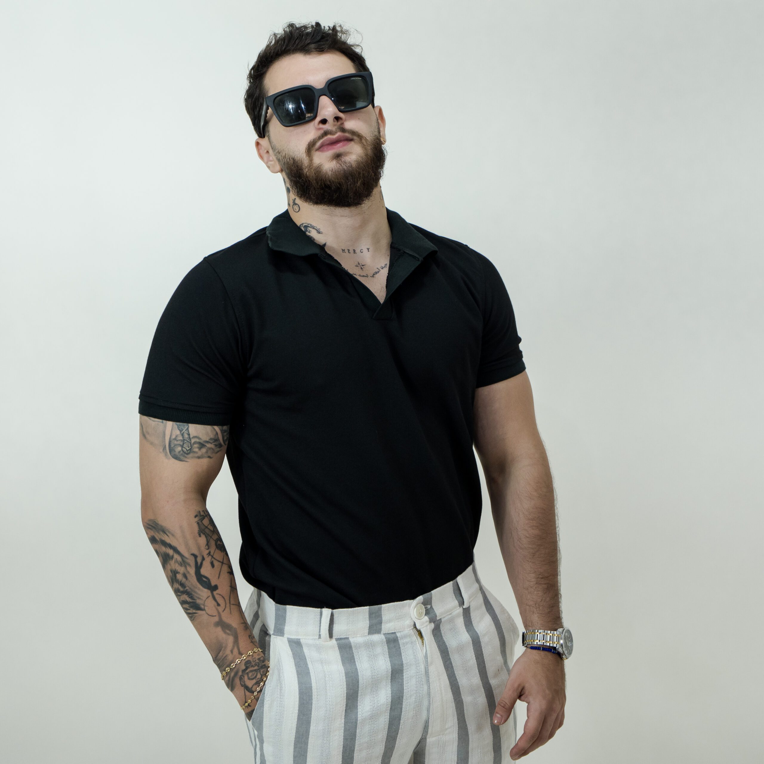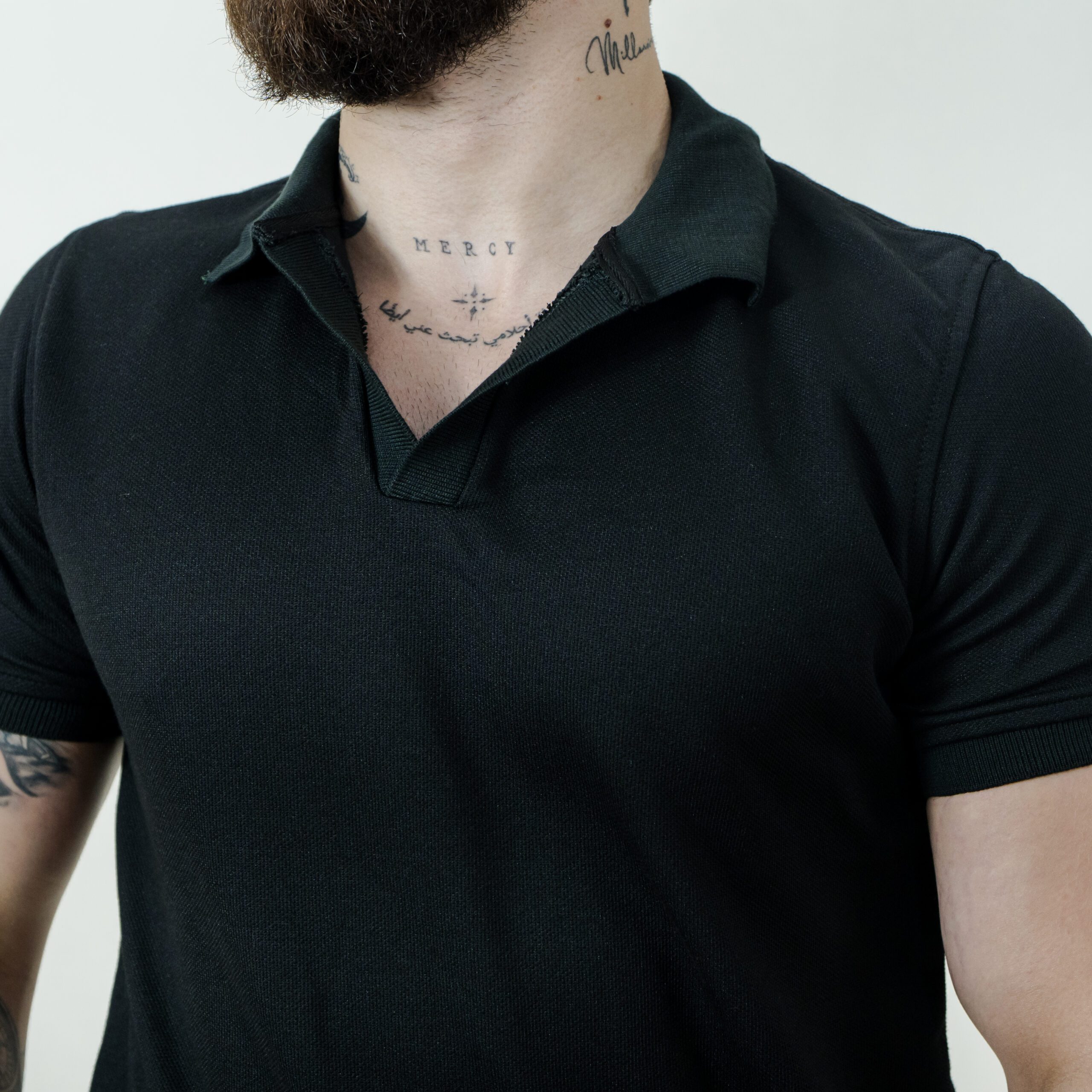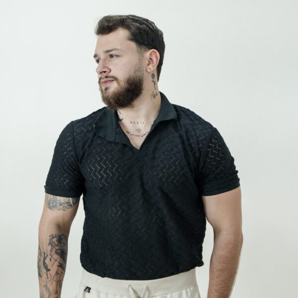Esta polo negra es la combinación perfecta entre elegancia casual y comodidad diaria. Su diseño de líneas limpias y cuello clásico con abertura frontal aporta un estilo moderno y sofisticado, ideal para cualquier ocasión.