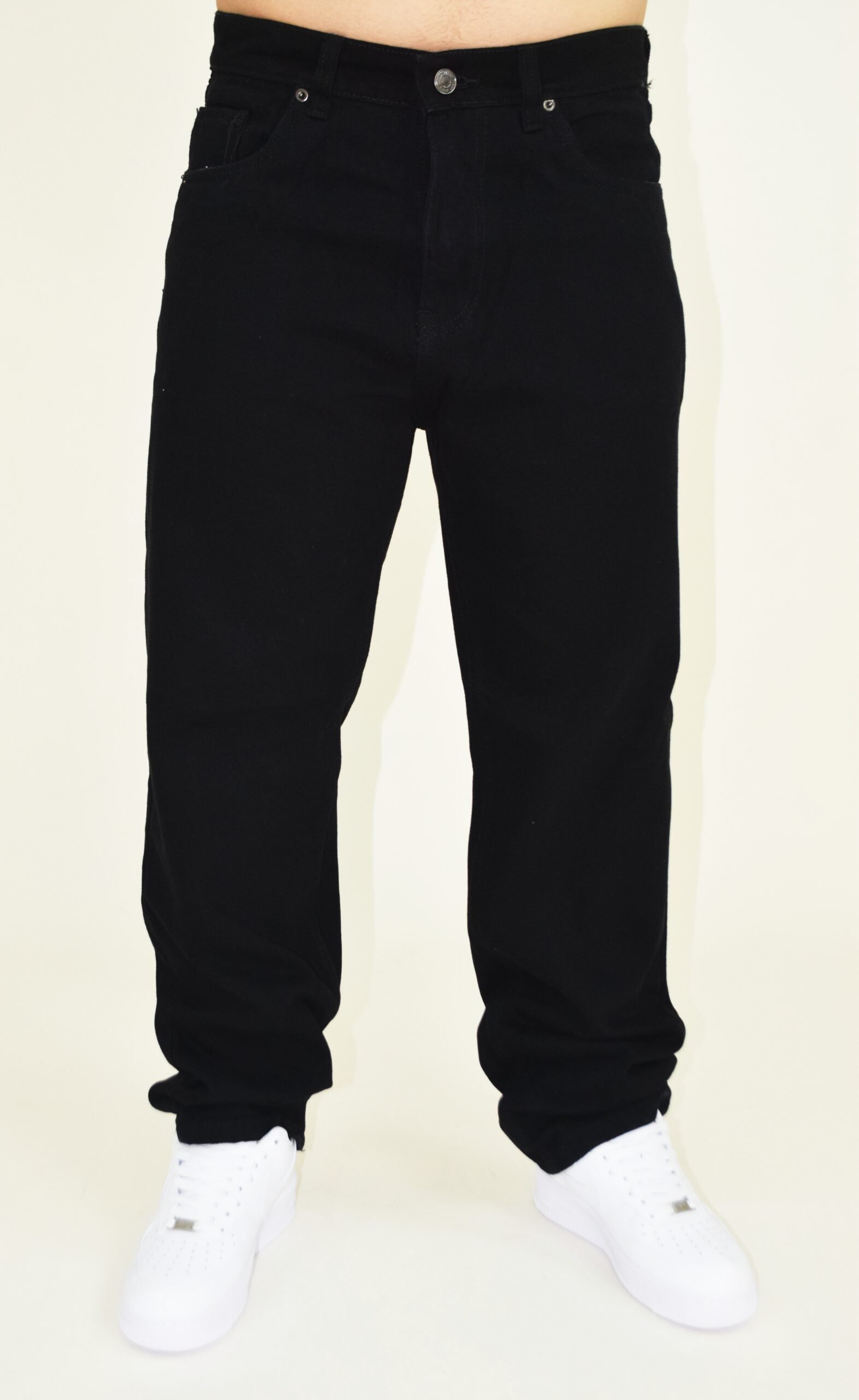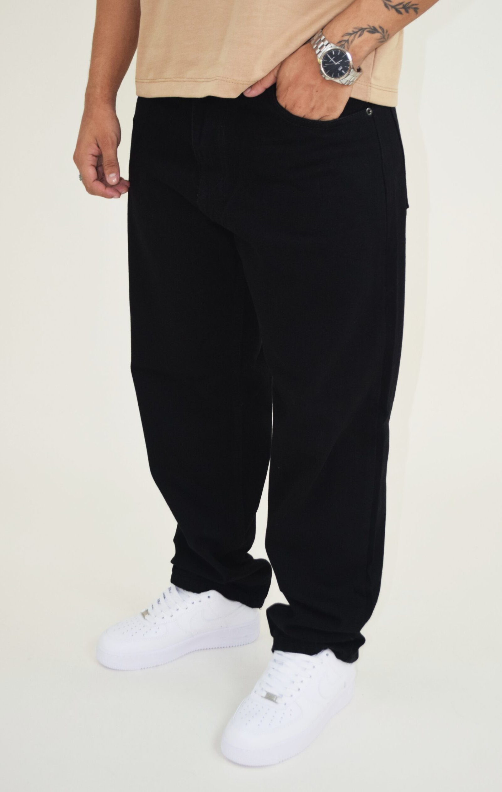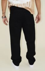Confeccionado en denim negro de alta calidad, combina resistencia y suavidad para un uso diario. Su diseño minimalista con bolsillos funcionales, cierre metálico y basta ancha lo convierten en una pieza perfecta para combinar con camisetas, hoodies o chaquetas.