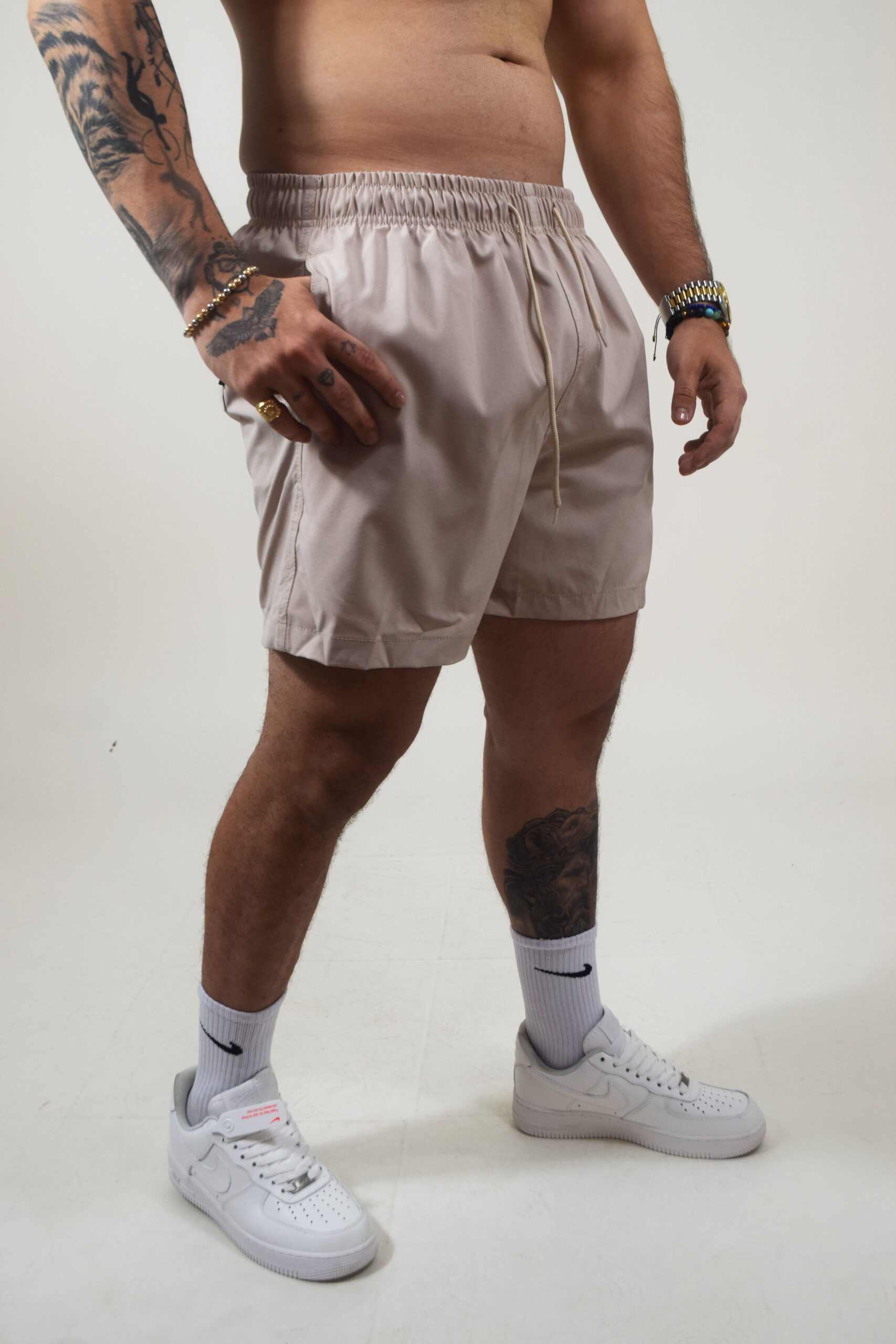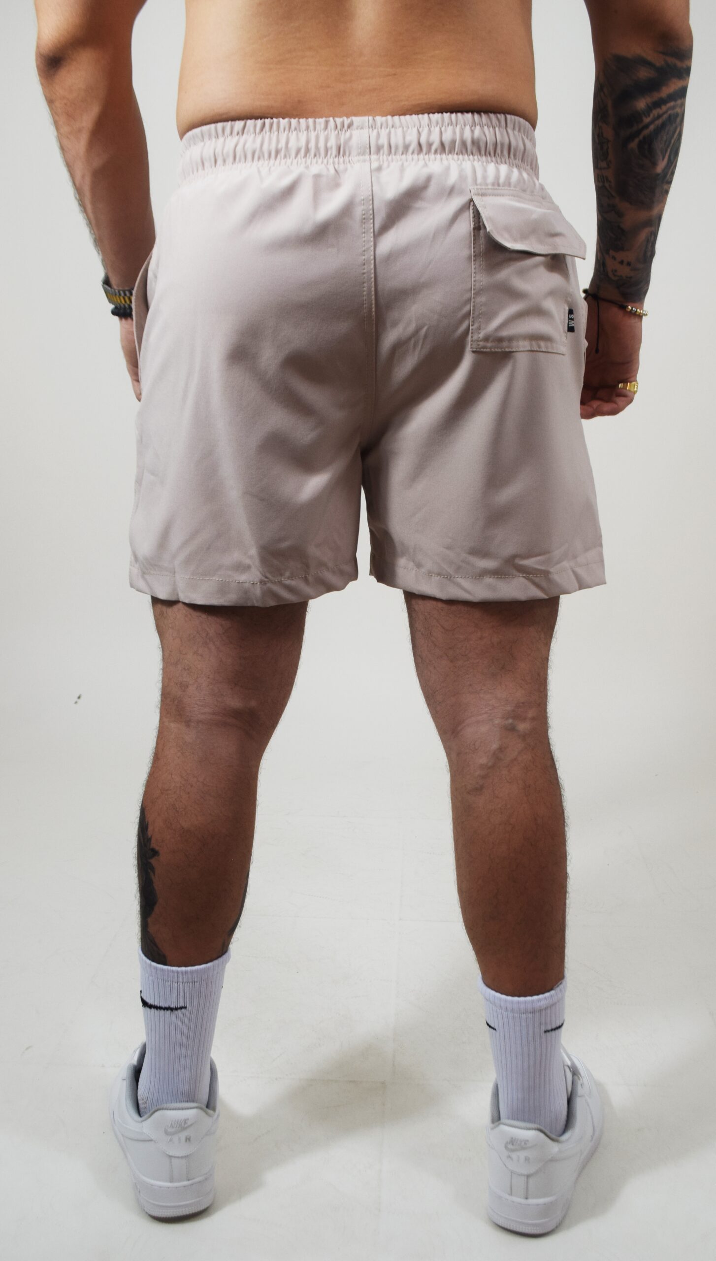 Bermuda semipermeable en tono beige claro, ligera y súper cómoda para cualquier plan. Su diseño versátil te acompaña en la playa, la ciudad o el gym — ¡hazla tuya y suma estilo a tu outfit!